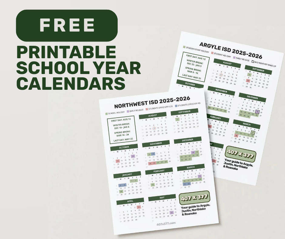 Stay organized and up to date with these printable school year calendars for Northwest ISD and Argyle ISD. Whether you’re tracking holidays, early release days, or school breaks, these downloadable PDFs make it easy to stay in the know. Click here to download yours.